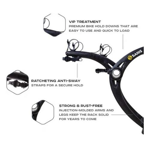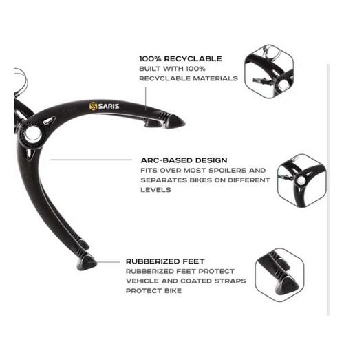 The Saris Bones 2 Bike Trunk Rack is a durable and reliable bike rack that's made from recycled materials and built in the USA. The Saris Bones 2 Bike Trunk Rack is designed to hold up to two bikes for convenient carrying to your next adventure. Featuring rust-free, molded arms and legs, the Saris Bones 2 is incredibly strong, while the rubberized feet and coated straps protect your car and bike from scratches. For a more secure hold, the Saris Bones 2 Bike Trunk Rack has ratcheting anti-sway straps too.