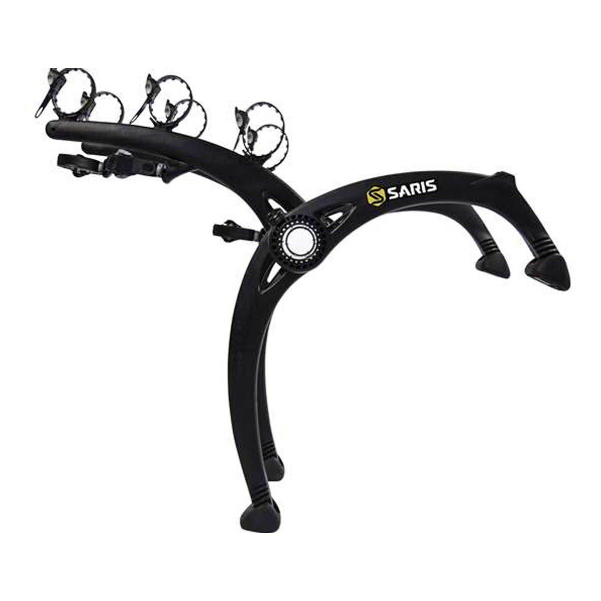 The Saris Bones EX 3-Bike Trunk Rack is designed to help you easily and efficiently haul up to three bikes to your destination. Made from molded plastic, the dogleg, arc-based design of the Saris Bones EX 3-Bike Trunk Rack keeps your bikes at different heights to reduce friction and will fit over most spoilers on popular vehicles. With ratchet straps and articulated rubber feet, you're able to easily and quickly secure the trunk rack to your car without having to worry about damaging the paint. Plus, the Saris Bones EX 3-Bike Trunk Rack features premium bike hold-downs that easily adjust for a super-secure, stable fit.