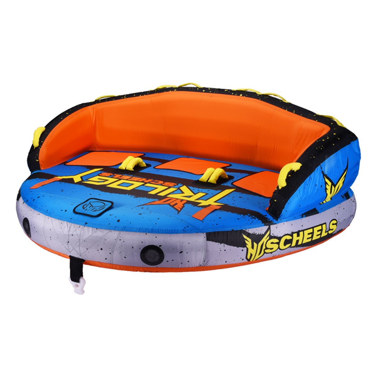 The Scheels Trilogy 3-Person Tube offers 2 tow directions and delivers hours of fun behind the boat. Grab a friend and sit down in the ergonomic, couch style seats OR flip the tube around and kneel on the neoprene pads while towing the tube from the opposite side…either way works great! Made from only the finest materials and backed by our 1 year limited warranty, the Trilogy will keep you where you want to be…on the water!