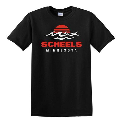 The Adult SCHEELS Lakes State T-Shirt is a perfect t-shirt to wear to the lake this summer. The graphic logo across the chest features a sunset and waves with the SCHEELS brand name below. Made from cotton, this adult t-shirt is soft, breathable, and durable. Whether you're at the lake or enjoying your weekend, wear the Adult SCHEELS Lakes State T-Shirt.