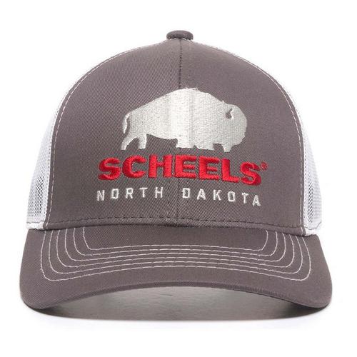 Protect yourself from the elements with a new SCHEELS hat. You?ll be reaching for your SCHEELS hat day after day. From days spent fishing on the lake to long hours in the deer stand, this SCHEELS hat is suited for it all. Add to your collection or pick up your first SCHEELS hat today! "As an avid fan of the bison and an outdoor enthusiasts who enjoys exploring the Northern Plains, the SCHEELS North Dakota Bison State Hat is a must. With an embroidered bison and SCHEELS logo, this hat is ready for any adventure ahead. The structured design and printed seam taping, provide this hat with the long-term durability it needs — season after season. As the front panels feature a polyester fabric, the back offers a breathable mesh for those warm-weather days. Choose the North Dakota Bison State Hat today!