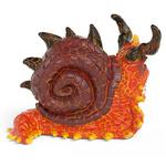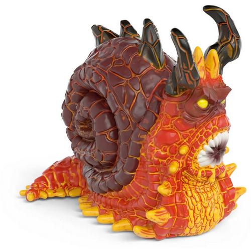 The mean Lava Snail is approaching with a trail of slime. Very slowly, she fixes her victim with her poisonous yellow eyes and then approaches. She is certainly not the fastest. But she shouldn't be underestimated! When she goes into battle, she has a clever strategy: She retreats into her shell and hides there. Her shell is impenetrable, because it’s covered in spikes. If the attacker turns away, she emerges from her shell again and bites with her sharp teeth. This tactic works frighteningly well and has made her feared throughout ELDRADOR®. Nasty!
