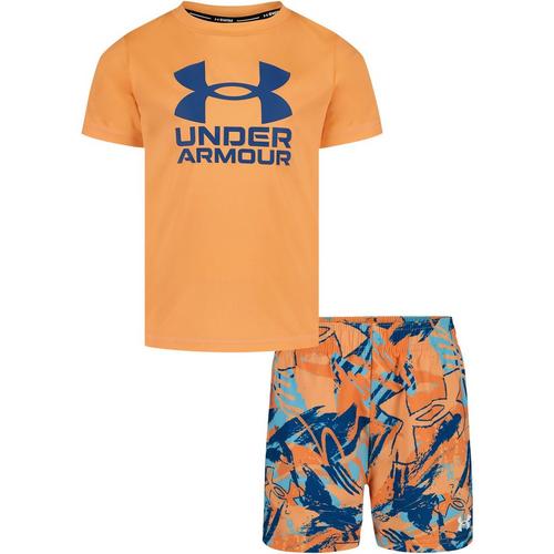 The Under Armour Kids' Scribble Swim Set is a durable, performance-driven two-piece outfit designed to provide comfort and protection for all-day water activities. This set features a vibrant orange "Atomic" colorway with bold blue accents, perfect for visibility at the beach or pool.