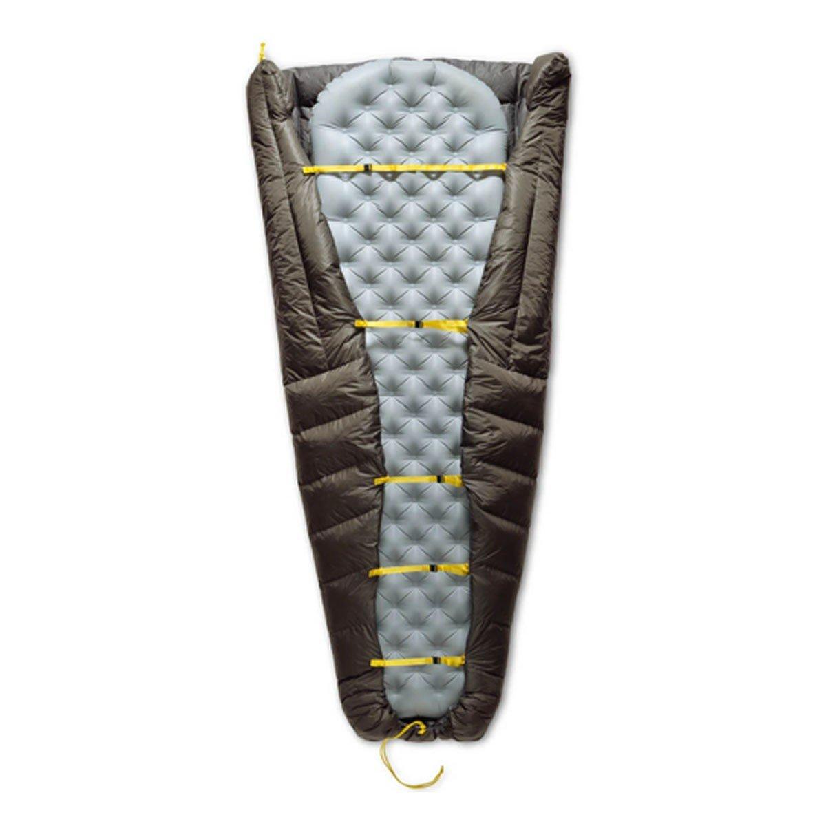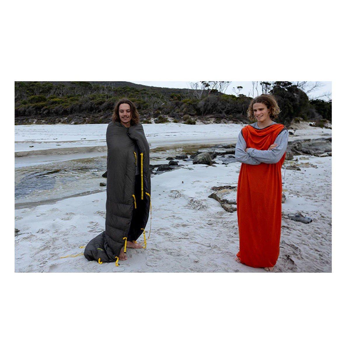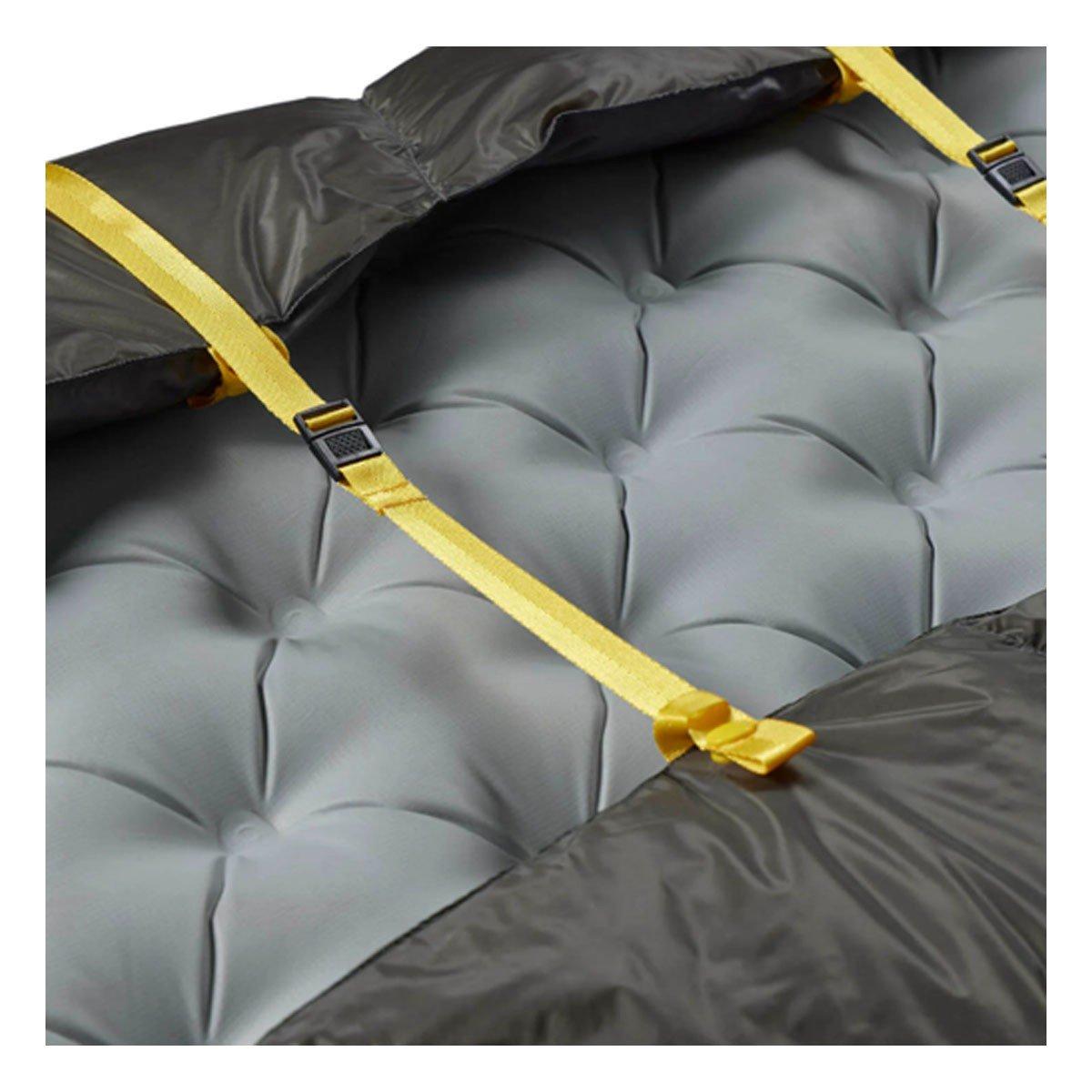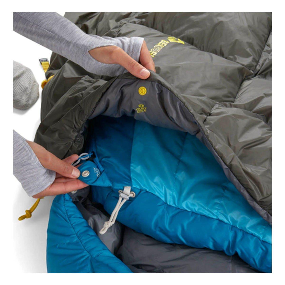 Insulated with RDS-certified, 850+ fillpower goose down with a non-PFC Ultra-Dry Down treatment, the Ember quilt was designed for multi-season use with an excellent warmth to weight ratio. In warmer conditions, the ability to easily ventilate keeps you comfortable. As temperatures drop, the drawcord footbox helps you retain warmth and the light, breathable 10D nylon shell fabric is treated with a non-PFC DWR finish to repel moisture, while the 10D nylon liner fabric is there to deliver pure comfort. The Ember is easy to secure to your sleeping mat with the attached straps or add it to your Sea to Summit sleeping bag using the integrated QuiltLock system for a thermal boost in colder weather.