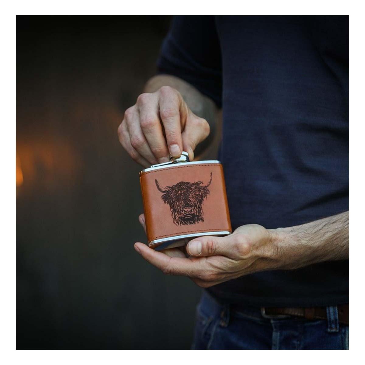 Stainless steel and hand-bound in genuine leather, our engraved hip flask is perfect for holding your favourite tipple. This tasteful hip flask comes gift boxed making it the perfect gift for him this season.