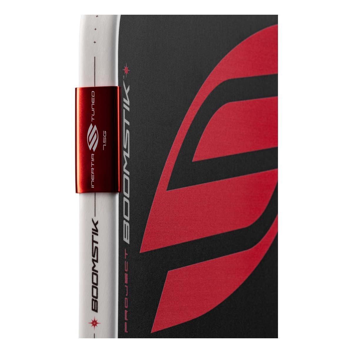 Project Boomstik also introduces the MOI Tuning System — a new paddle technology that delivers elite performance with a maximum sweet spot and balance, right out of the box. It’s an overall design approach that includes a semi-permanent perimeter weighting solution that balances mass distribution with precision-engineered weights clamped to the edge guard. By putting the weight exactly where we want it — shifting mass toward the outer regions of the paddle and increasing the moment of inertia — it stabilizes the paddle during off-center hits. The result is clear: a larger and more forgiving sweet spot to help you get more balls over the net.