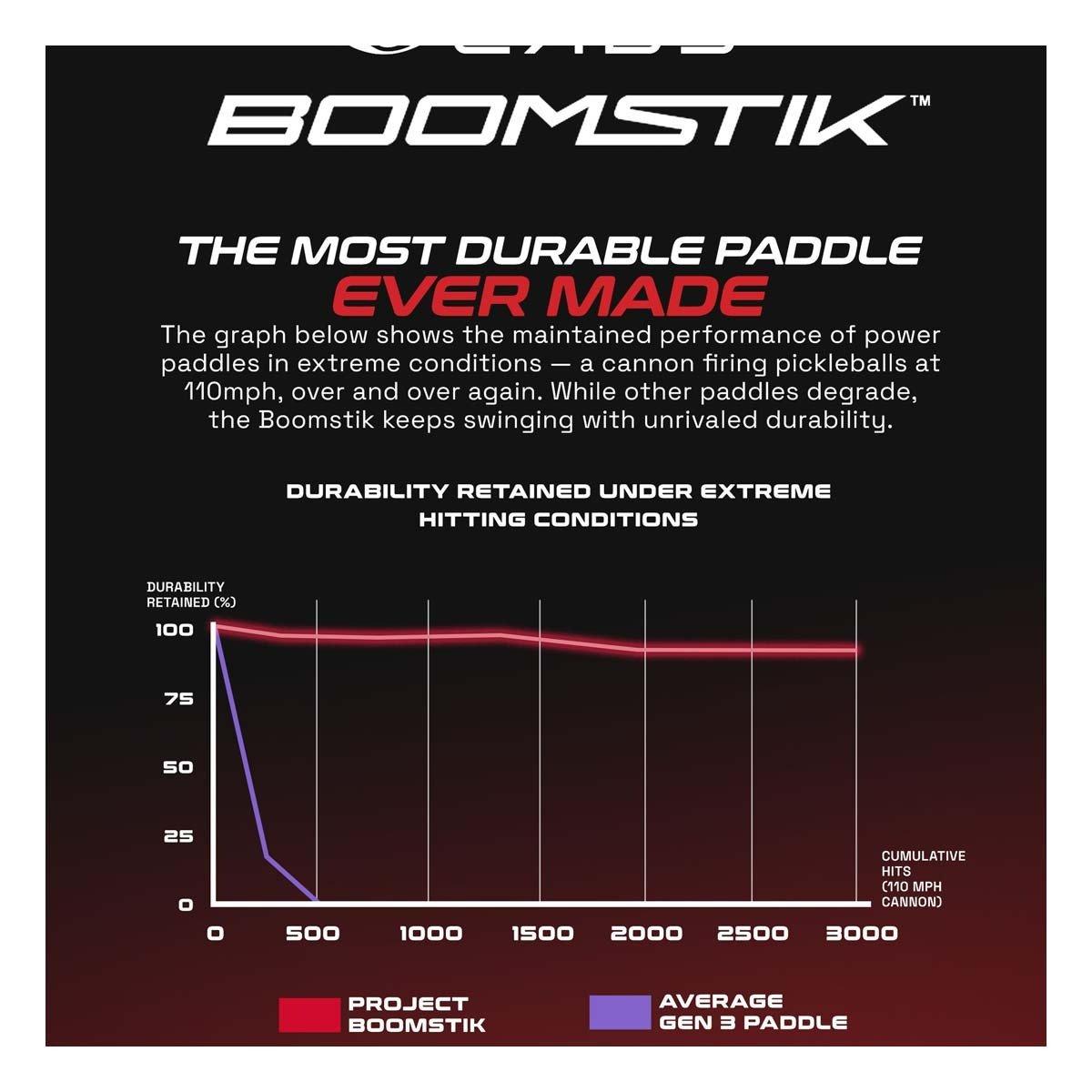 How does the Boomstik stack up to other power paddles? It adds 12% more exit velocity to your shots compared to the average Gen 3 paddle. This paddle gives you the ultimate advantage on the court, and your opponent won’t see it coming.