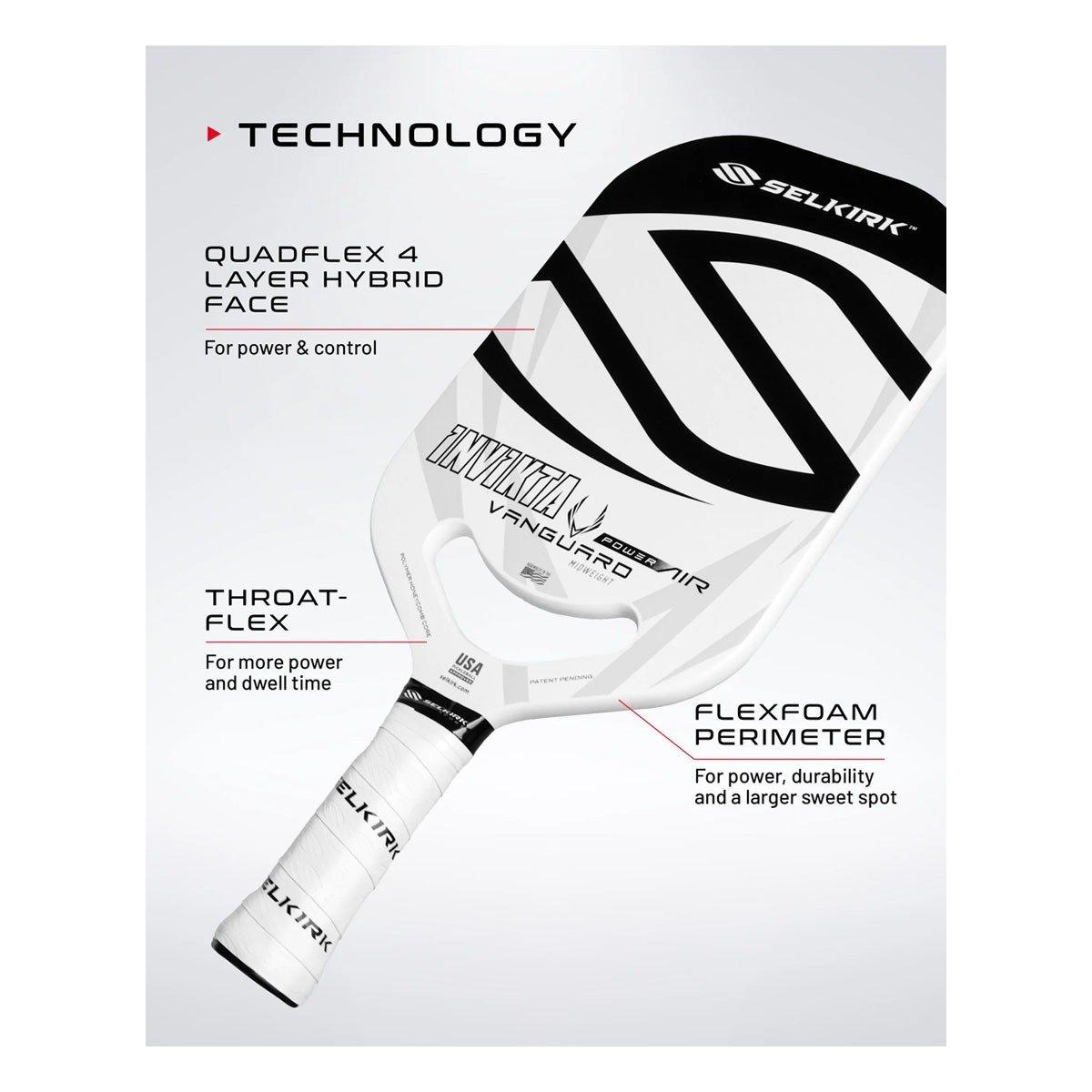 Air Dynamic Throat for quicker swing speed: Developed in Selkirk Labs with Project 002 and fine-tuned to provide maximum flex, the Air Dynamic Throat is now larger and even closer to the handle, offering optimal air flow and improved ball control.