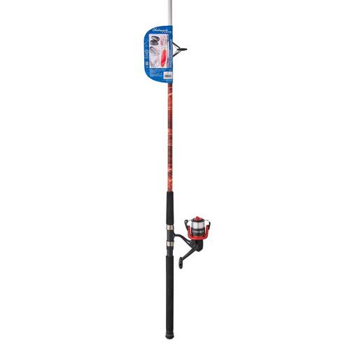 The Shakespeare® Tiger Spinning Catfish Combo Kit is an action-ready combination that's the ideal choice for catfish, striper, and other freshwater and saltwater game fish. The kit features a 23-piece tackle pack and comes with a pre-spooled reel, making it easy for anglers to head straight to the water for an action packed day of fishing. A durable 2pc rod with stainless steel guides is paired with a 50 size spinning reel creating a powerful setup anglers can rely on.
