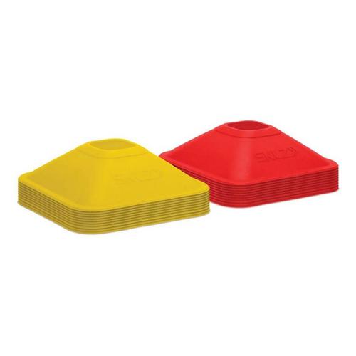 Mini Cones are engineered with a square base for better balance, making them the ideal training aid for a variety of sports and for players of all ages and skill levels. These high-visibility cones can be used for marking training areas, setting up drills and skill exercises, fields, and courts. Constructed for use on a variety of surfaces, the cones can be used on turf, courts, grass, and much more. Designed with durable materials, SKLZ Mini Cones are built to withstand rigorous training sessions, season after season. A carry strap is included for easy transport and storage. The set of 20, 2” high-visibility cones features two colors, 10 yellow and 10 red.