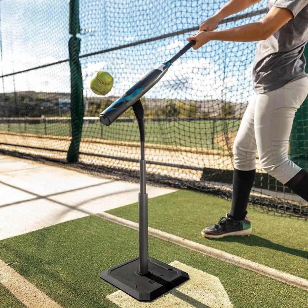 The pro level tee helps batters improve their swing by maximizing their reps during practice or warmup. The Pro Tee Elite exposes the right amount of the ball for more accurate training to help improve game-day hits. Utilize the tee to also work on proper swing mechanics, such as follow through and stride to help gain further distance resulting in more base hits. The high energy return material of the tee top flexes on impact for more realistic ball contact without interfering with the swing and is durable enough to withstand hard hits and many seasons of training. The adjustable height allows the athlete to efficiently change the position of the ball to practice hitting at various pitch locations. The tee quickly removes from the base for easy setup, breakdown, and storage. A 7lb. evenly weighted base provides optimum stability swing after swing.