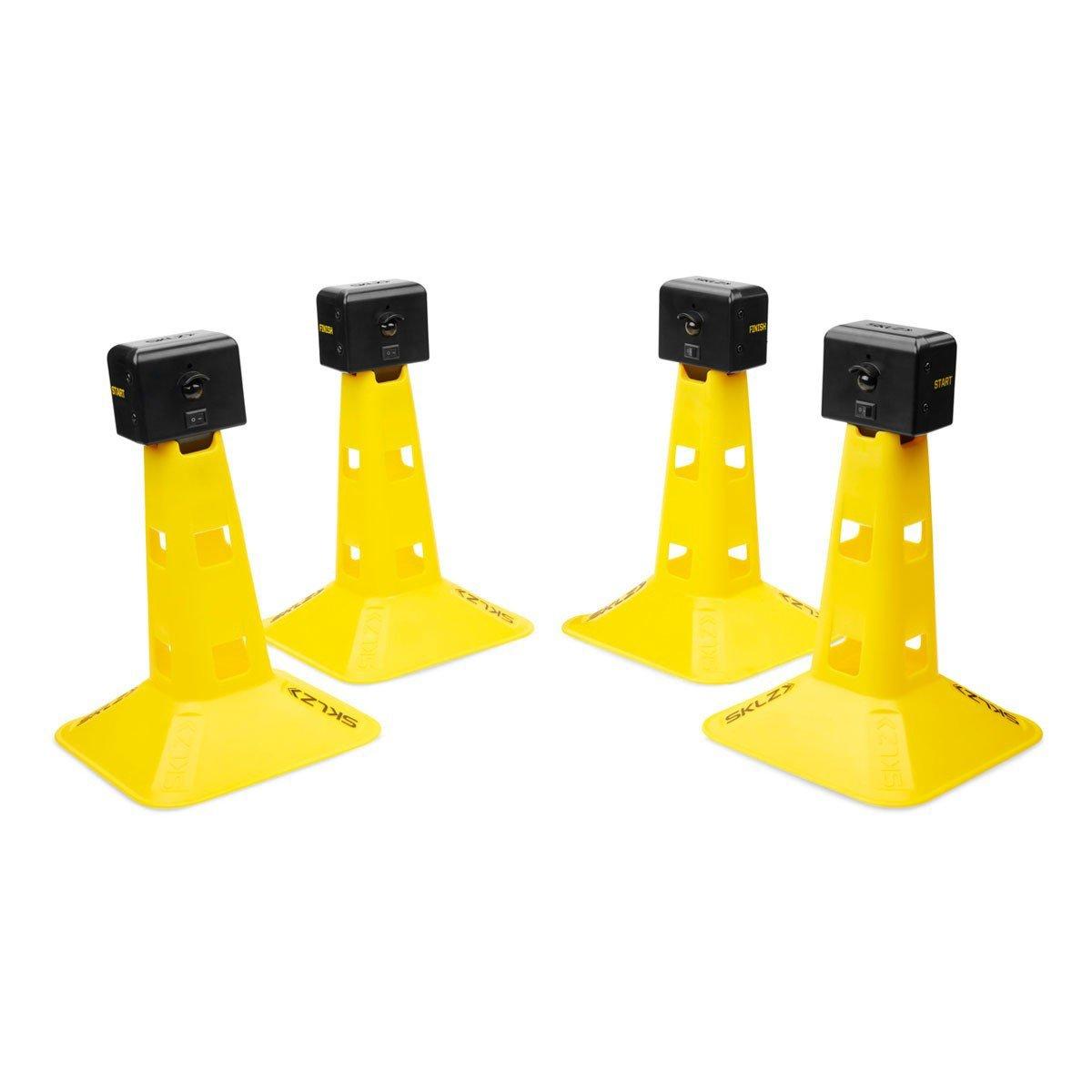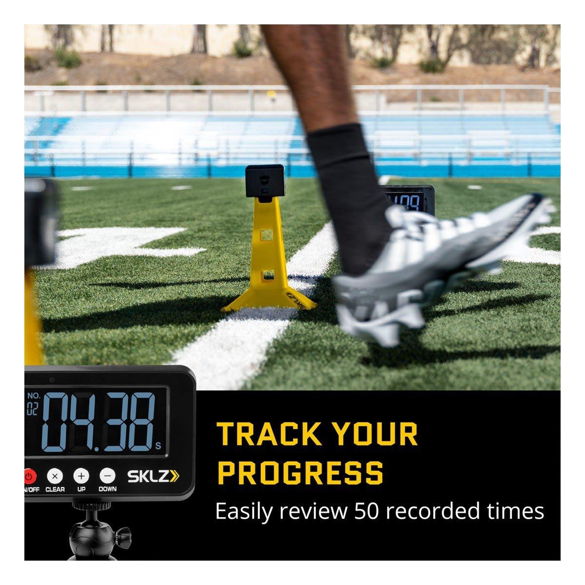 Elevate your training or simply challenge friends and family to settle the debate on who is the fastest. The Speed Gates are designed to track and record speeds up to 50 yards in distance. The included timer records the most recent 50 times to easily review your progress or how you stack up to the team. Ideal for solo training in the backyard or coaches looking to add some fun to their practices. Perfect for timing your 40-yard dash, working to get from the box to first base faster, beating an opponent to the ball, or anything in between. Whether you are training indoors or outdoors the timer is built to be visible in all conditions. Simply set up a start gate and finish gate using the light indicators on the sensors to ensure they are connected. Never settle for yesterday’s best. Set includes 4 cones, 4 sensors, timer and carry bag for easy transportation to and from the field. Bring the race home or to a field near you.