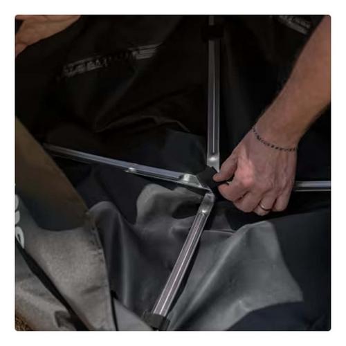 Shelter is made with PVC-coated polyester, making it 100% waterproof and weather resilient. Reinforced 6061 aluminum stays create a dome at the top of Shelter to keep water from pooling on top of Yukon.