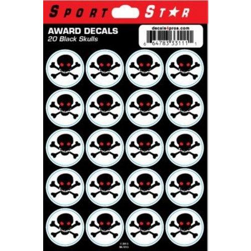 One of our most popular awards; these black skulls stand out on light colored helmets and look quite fierce and aggressive! Printed on durable vinyl with a clear overlaminate for long lasting good looks and easy application/removal. Works on any color helmet - the outline is the secret!
