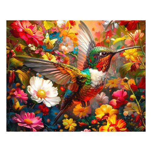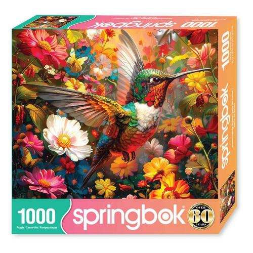 Immerse yourself in the beauty of nature with this exquisite 1000-piece jigsaw puzzle by Springbok, featuring a vibrant hummingbird in mid-flight surrounded by a dazzling array of colorful wildflowers and butterflies. This stunning artwork captures every intricate detail, from the iridescent feathers to the blooming petals, offering a truly captivating challenge. Perfect for nature lovers and puzzle enthusiasts, this masterpiece will brighten any space once completed!