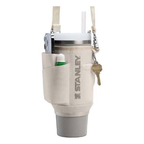 Welcome to hands-free hydration—with pockets! Made of 100% recycled polyester, style meets function in a vivid array of colors. Keep the All Day 40 oz Quencher Carry-All by your side to meet your hydration goals. Wrap the band, lined with a winged bear pattern, around your 40-ounce Quencher and secure with the double snap closure. Sling the strap across your body, hold onto your loved ones and have fun. With three pockets, one is spacious enough to hold your phone while the second pocket below stores a slim wallet or card sleeve. A smaller mesh pocket holds compact headphones, lip balm, or the small extras you can’t live without. Thoughtful design means a dedicated sleeve to hold onto your sunglasses. There’s even a clip for your keys! Detach the strap and swap colors with your best friend. Wherever the good times take you, move freely and stay hydrated with Stanley.