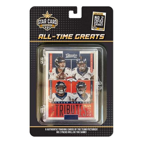{"reviews":[{"id":6404018,"locale":"en_US","rating":5,"title":"Good!","text":"My kiddos love these- great for collections","textLength":43,"csFlag":false,"inappropriateFlag":false,"reviewedFlag":true,"autoModerated":true,"published":true,"incentivized":false,"upVotes":0,"downVotes":0,"orderId":"138138369","dimensions":[],"responses":[],"tags":[],"media":{"photo":[],"video":[],"audio":[]},"user":{"nickName":null,"firstName":null,"lastName":null,"emailAddress":null,"externalId":null,"city":null,"state":null,"country":null,"ageRange":null,"badge":null,"shopperProfiles":[]},"reviewedDate":"2025-07-03T14:16:50-04:00","purchaseDate":"2025-03-19T00:00:00-04:00","dateCreated":"2025-03-21T07:50:25-04:00","customData":[],"acceptedTermsAndConditions":true,"incentiveType":null,"campaign":null,"deviceFingerprint":null,"topics":[],"catalogItems":[{"sku":"19287-FBDENATGMO24","title":"Star Card Surprise Denver Broncos All Time Greats 6pk Trading Cards","url":"https://www.scheels.com/p/19287-FBDENATGMO24","category":"sports-cards","reviewCount":1,"ratingCount":1,"averageRating":5,"ratingBreakdown":{"1":0,"2":0,"3":0,"4":0,"5":1},"active":true,"attributes":[]}]}],"offset":0,"limit":10,"total":1,"gtin":"617723385538"}"Full Description:\nStar Card Surprise Denver Broncos All Time Greats 6pk Trading Cards\n\nFeatures:\n\u003cul>\n\u003cli>No 2 packs are the same. Actual top card shown will vary.\u003c/li>\n\u003c/ul>\n\n"