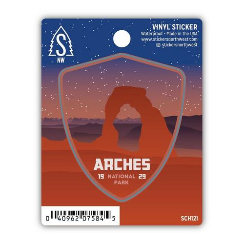 Show off your love for the great outdoors with this Arches National Park sticker from Stickers Northwest. Featuring the iconic Delicate Arch against a stunning desert landscape, this high-quality vinyl sticker is perfect for decorating your water bottle, laptop, or car. Made in the USA, this sticker is durable and weatherproof, so you can take a piece of one of America's most beautiful national parks with you wherever you go. Get yours today and start exploring!