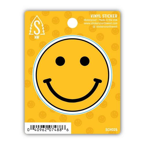 Spread joy with the Stickers Northwest Smiley Face Sticker. Featuring a classic smiley design, it brings positivity to laptops, water bottles, and more. Durable and weatherproof, it's a cheerful addition for anyone who loves to brighten their day with a simple smile.
