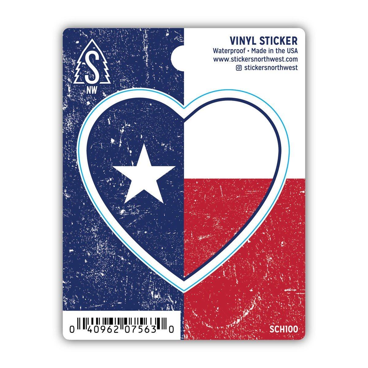 Show off your Texas pride with this state flag heart sticker from Stickers Northwest! Made from durable vinyl, this sticker features the iconic lone star flag design in the shape of a heart. Perfect for laptops, water bottles, car bumpers, and more. Stick it on and represent the Lone Star State wherever you go!