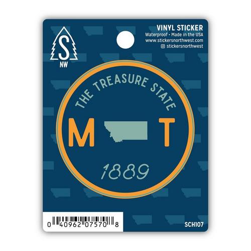 Capture the spirit of Montana with the Stickers Northwest The Treasure State sticker. Featuring iconic imagery celebrating Montana's natural beauty and heritage, it's perfect for residents and adventurers. Adorn your belongings with this sticker to showcase your love for the Treasure State wherever your travels take you.
