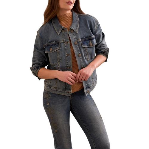 Women's Tribal Stud-Accent Girlfriend Denim Jacket