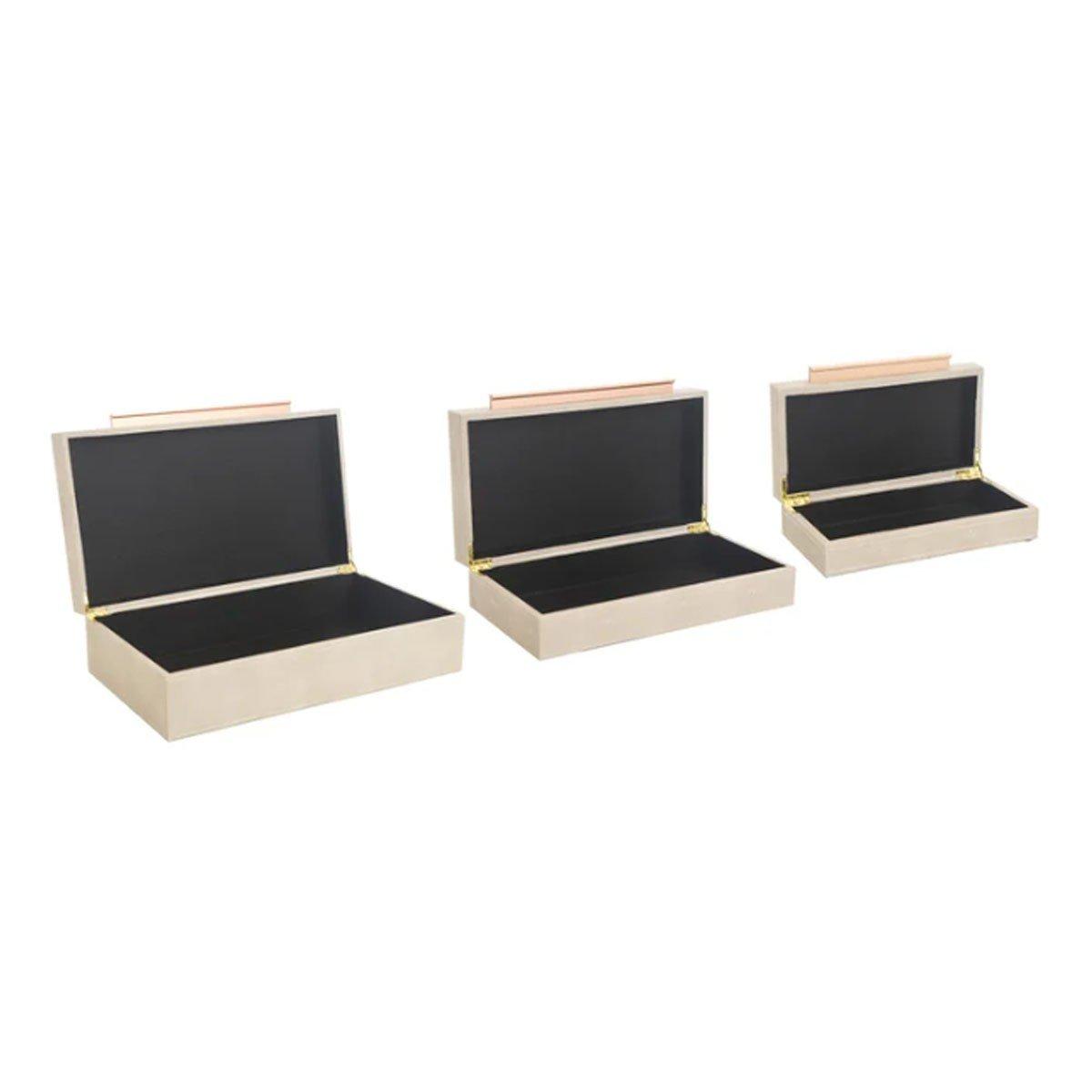 StyleCraft Home Collection Camilla Neutral Leather Wrapped Accessory Boxes (Set of 3)