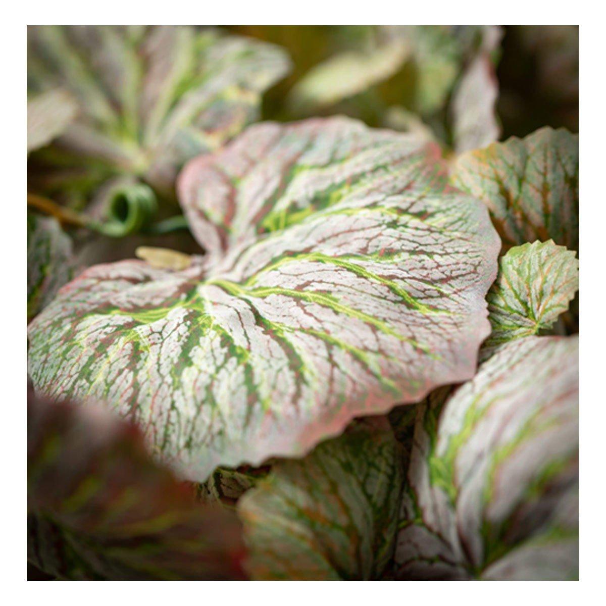 This freshly styled, sage green begonia bush has stunning presence that brings natural foliage indoors. Featuring life-like leaves in tonal mossy hues, this plush and full hanging bush will brighten your space and you'll enjoy the look without the upkeep.