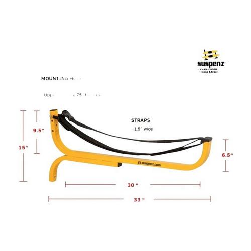 Maximize your storage space with these heavy-duty racks, designed to mount like shelves and securely hold your watercraft! Perfect for canoes, kayaks, paddleboards, and even cargo boxes, the Suspenz FLAT Rack allows you to store your vessels right-side up or upside down. Constructed from durable powder-coated steel with rectangular tubing, these racks mount flush to your wall and extend 33” for easy access. The suspension strap system cradles your watercraft on straps that conform to its shape, therefore, eliminating pressure points and protecting against hull distortion. Safety straps ensure your watercraft stays securely in place. With a load capacity of 125 lbs, it accommodates watercraft up to 34” wide (or 36” with a 2x4 mounted between the rack and wall). Perfect for both indoor and outdoor use, this rack is built to handle all your storage needs.