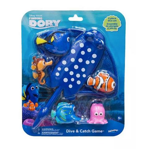 Join Mr. Ray on a field trip to the reefs with the Disney Finding Dory Mr. Ray's Dive and Catch Game from SwimWays! Toss the characters—baby Dory, Nemo, Pearl, Sheldon, and Kathy—into the pool, then use the Mr. Ray net to swim and catch them. Each character floats at different depths for added challenge. This fun game also helps young swimmers build confidence and practice swim skills. The set includes 6 pieces: 1 net and 5 characters. Recommended for kids 5 and up.
