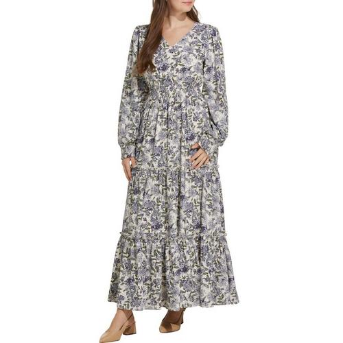 {"reviews":[],"offset":0,"limit":10,"total":0,"gtin":"198461051614"}"Full Description:\nMaxi length dress with long sleeves, tiered skirt, smocked waist and cuffs, v neckline, and pockets.\n\nSpecifications:\n\u003cul>\n\u003cli>Fabric Content: 95% polyester 5% spandex\u003c/li>\n\u003c/ul>\n"