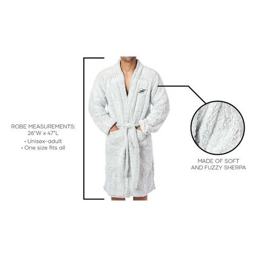 {"reviews":[],"offset":0,"limit":10,"total":0,"gtin":"190604316949"}"Full Description:\nThe Northwest Miami Dolphins Sherpa Bathrobe\n\nFeatures:\n\u003cul>\n\u003cli>26" x 47"\u003c/li>\n\u003cli>Embroidered logo applique on chest\u003c/li>\n\u003c/ul>\n\nSpecifications:\n\u003cul>\n\u003cli>Do not bleach\u003c/li>\n\u003cli>Do not iron\u003c/li>\n\u003cli>Remove Promptly\u003c/li>\n\u003cli>Machine wash cold separately using delicate cycle and mild detergent\u003c/li>\n\u003cli>Machine dry separately on gentle cycle\u003c/li>\n\u003c/ul>\n"