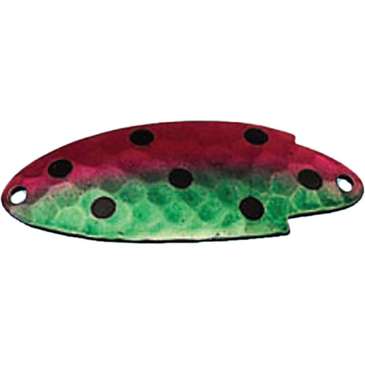 The Thomas Buoyant minnow is unsurpassed as one deadly trout and salmon lure! First issued a U.S. patent in 1946, the Buoyant is an erratic-action wobbler that imitates the darting motion of a frantic, fleeing baitfish. This action, combined with jewelry-quality finishes, creates a spoon that entices even the wariest of trout or salmon, and many other types of game fish, into striking. Our largest 5/8 oz. size is especially deadly on northern pike! It is important to use a moderately slow retrieve or troll speed for the Buoyant to achieve its most effective action. An occasional sharp twitch of the rod tip can really draw hard strikes! Cast or trolled, deep or shallow, the Thomas Buoyant has been a favorite of successful anglers for over sixty-five years! Made in the U.S.A.