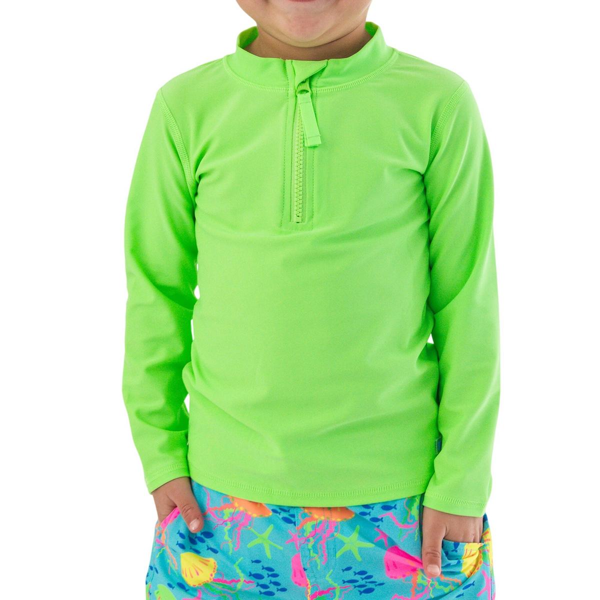 Our RuggedButts long sleeve zipper rash guard top is great for active little guys. The UPF 50+ sun protective fabric and full coverage fit will keep him safe from the sun's harmful rays. The classic style makes it easy to mix and match with your favorite RuggedButts swim trunks.