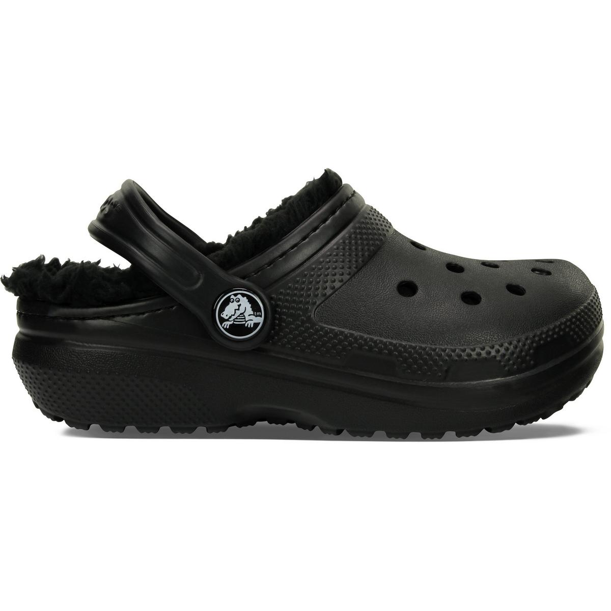 Toddler Crocs Classic Lined Clogs are perfect for kids who love easy, slip-on comfort. With this toasty lined version, your little one can wear these crocs all season. The pivoting heel strap provides a secure fit for busy feet while the lightweight style provides all-day comfort. You never have to worry about your kids complaining about cold feet with these crocs! The 100% polyester faux fur lining will keep them warm and toasty no matter the season.