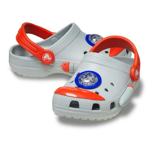 Featuring fixed space and rocket ship embellishments, your little ones can show off their love for rocket ships, or even pretend like they become a rocket ship, when they put on these shoes. Crocs offers a variety of Classic Clogs for Kids and Toddlers that feature original character-rich graphics and other inspired designs to help kids express themselves and engage new friends, resulting in more fun for the little ones.