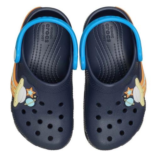 Great for little ones who are fascinated with outer space and UFOs, this version of the iconic clog features a unique spaceship patch that lights up with every step. Little ones will enjoy the colorful patch with light up LEDs, and Croslite™ foam construction keeps the clogs comfortable and easy to wear. Crocs offers a variety of Classic Clogs for Kids and Toddlers that feature inspired designs to help kids express themselves and engage new friends, resulting in more fun.