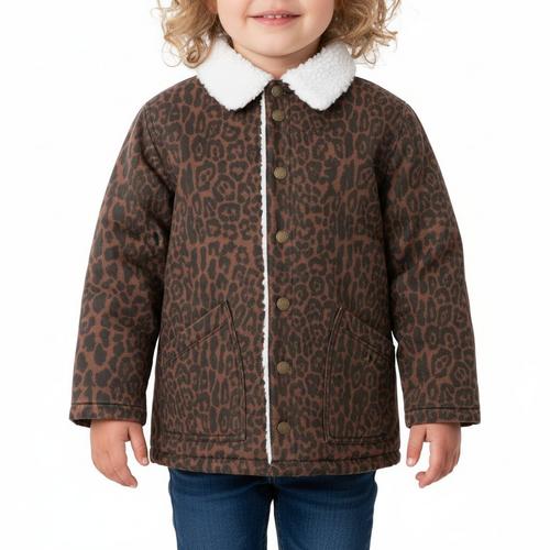 Elevate your little one's wardrobe with the Toddler Girls' Rylee + Cru Long Chore Jacket, a perfect blend of style and functionality for cooler months. This jacket is crafted with a durable yet soft cotton shell and a cozy polyester lining, ensuring comfort and warmth. Its classic silhouette is complemented by practical deep pockets and a button-down front, making it an ideal piece for both everyday wear and special outings. The timeless design and versatile 'leopard' print on a 'brown' denim fabric makes this a chic and practical jacket for any outfit.