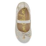 This little girls slip on ballet flat features an elastic strap across the upper for a perfect fit and bow with signature charm that is great for all formal occasions.