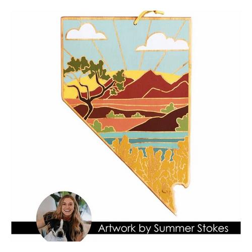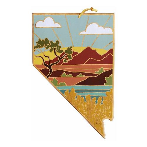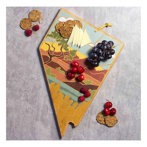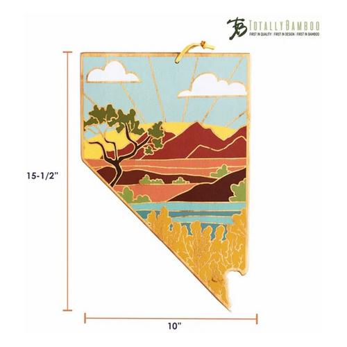 Celebrate the natural beauty of your favorite state with our State-Shaped Cutting Boards with Artwork by Summer Stokes! Each board features colorful landscape artwork by artist Summer Stokes. The artwork is applied using specialized UV printing that’s food-safe and will keep its vibrant color. Fill the board with your favorite meats, cheeses, fruits and nuts and uncover the beautiful landscape with each bite. Flip the board over to its blank side for a knife-friendly, bamboo cutting surface so you can prep and serve all in one. When not in use, the included hang tie allows it to double as wall art. Show off your love of the state in the kitchen, den or living room. They also make great gifts!