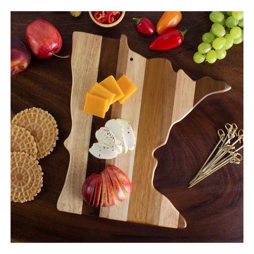 Show off your favorite state with our Rock & Branch® Shiplap Series! Masterfully crafted from a variety of wood plank colors for a distinctive “shiplap” appearance, each board is shaped to the unmistakable outline of the state. They’re perfect for slicing fruits and veggies or piling high with meats, cheeses and crackers for guests. When not in use, the included hang tie allows it to double as wall art. Show off your love of the state in the kitchen, den or living room. They also make great gifts!