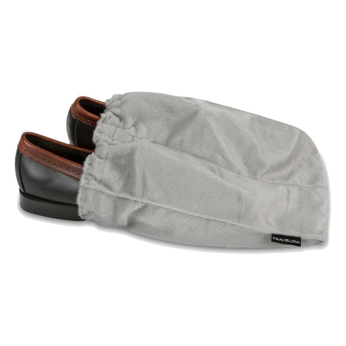Keep your shoes away from your clean clothes with this set of 2 Shoe Bags. Your clothes will stay clean and the divided shoe compartment ensures that each shoe is protected from scuffs and scratches. Made from soft, fleece material. Perfect for travel or home use.