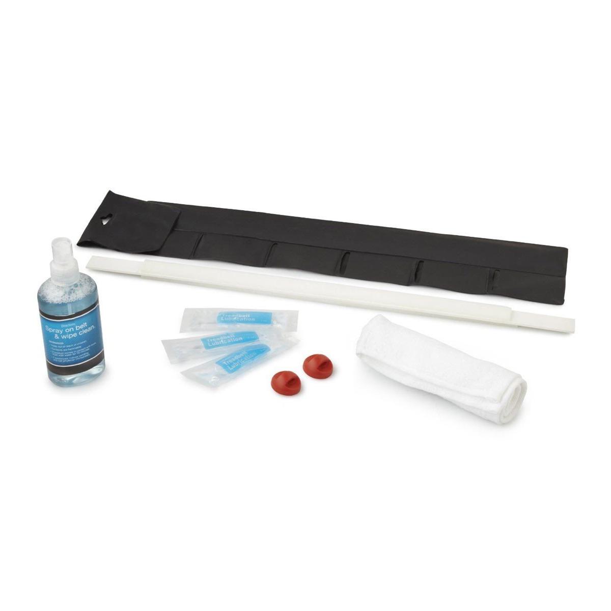 Your investment in fitness equipment is an investment in your health. Keep your machine clean and maintained with this convenient accessory kit. Kit includes belt cleaning spray, cleaning cloth, three tubes of proprietary belt lubricant, lubricant applicator stick, two replacement magnetic safety keys, instruction guide, and storage case.