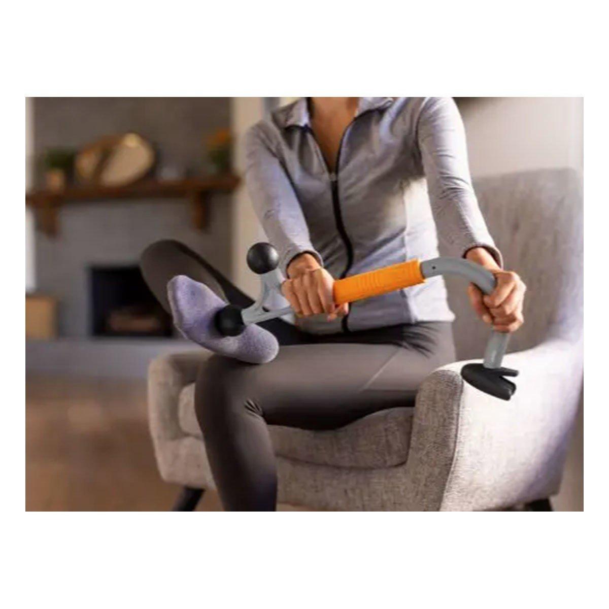 The TriggerPoint AcuCurve Elite is an ergonomic massage cane that targets hard-to-reach muscles and helps release knots in the back, neck, and shoulders. With a reversible tip for customizable relief, the claw tip provides a soft-tissue massage while the teardrop design targets specific trigger points. The unique AcuLoop grip allows for user-friendly gripping to apply more pressure to muscles. An integrated GRID-patterned roller can be used to release larger muscles, while the double-massage ball design effectively releases tight muscles around the spine.