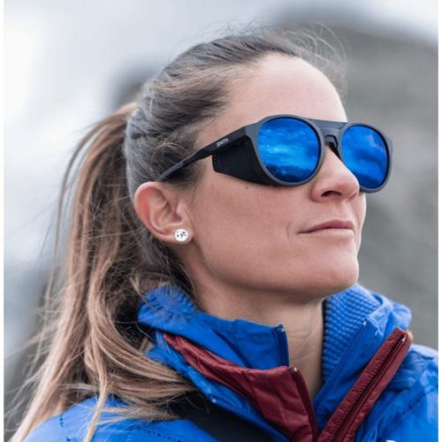 Where snow falls, you follow. On summit bids or high-speed descents, the Smith Venture sunglasses provide much-needed eye protection in alpine environments. They're our take on glacier glasses, with removable side shields that protect against light reflecting off snow, rock and ice. ChromaPop™ lens technology offers a terrain-boosting view of every wind drift and crevasse. Autolock hinges make for easy on and off when one of your hands is occupied with an ice axe or ski poles. And then there are the iconic round frames that look just as good glissading down a snowfield as relaxing post adventure.