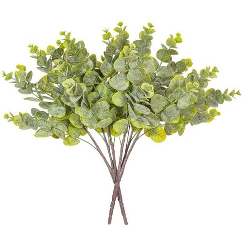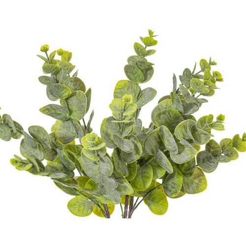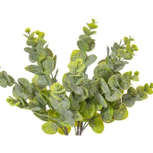 Vickerman 19" Artificial Green Spiral Eucalyptus Bush. Enhance the natural beauty of your artificial arrangements with this 19-inch green spiral eucalyptus bush. The foliage measures 15 inches in width at its widest point and boasts a combination of light and dark green hues for a realistic and striking appearance. Each bag contains two bushes, making it easy to incorporate into any setting.