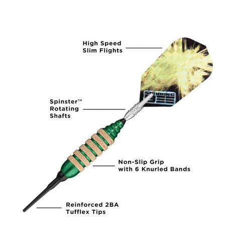 Great things come in small packages with the Viper Spinning Bee Soft Tip Darts, designed for use with either electronic dart boards or most sisal dart boards. These diminutive darts are packed with features starting with the barrel, fashioned from a specially coated brass alloy. Constructing the darts in this fashion allows us to bring you tough, weighted barrels without breaking the bank. Brass is an alloy that has been used in construction for its durability and great looking style, while maintaining a lower cost. We use this alloy to provide the highest quality barrels at the best cost to you.