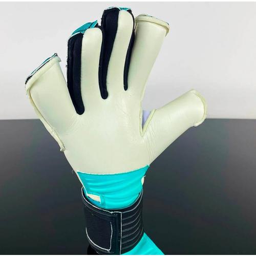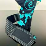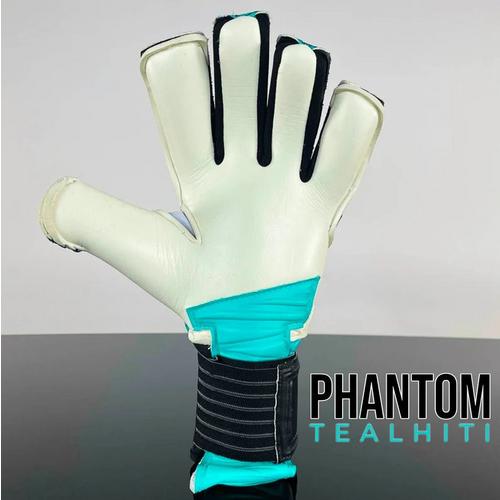 The Phantom Tealhiti. Inspired by the vibrant waters of Tahiti, this Phantom features a black backhand with bright teal accents along with a silicone punch zone, teal abrasion zone, and a double elastic wrist strap. The Phantom series is lightweight and flexible, yet still provides good protection with a double wrist strap and removable finger saves. The Phantom Tealhiti also uses our top Monster Grip Pro 4mm German Grip, which is durable in any weather and will stay tacky longer than other latexes.