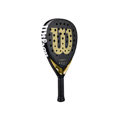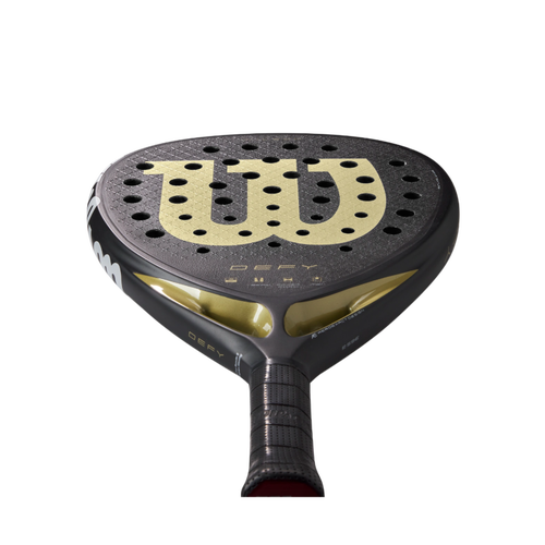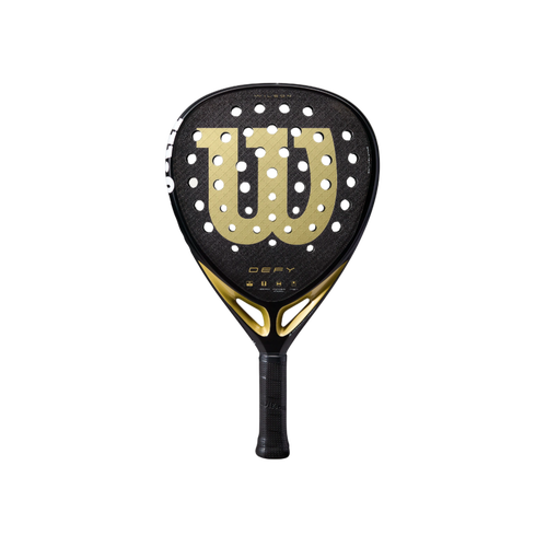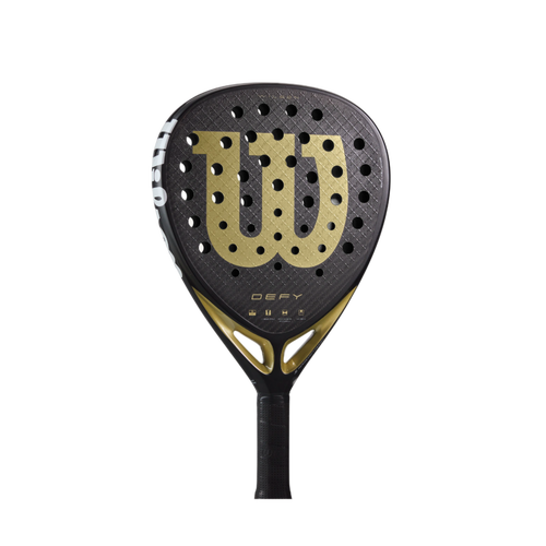 Wilson's Defy V1 is a powerful racket that feels rapid through the air and generates aggressive spin. It's made for advanced and pro-level padel players with a 3K Carbon Face and a Power Foam. The diamond-shaped racket creates natural power, along with the Aeroexact Design technology, which makes the racket feel rapid and whippy through the air. Another source of its explosive power comes from the I-Beam technology, which adds stiffness and rigidity to the middle part of the frame. While the Spin^2 Texture helps you get the most spin on the ball. The Duo Grid Hole Pattern combines large holes on the top for increased power with small holes on the bottom for spin and control.