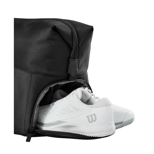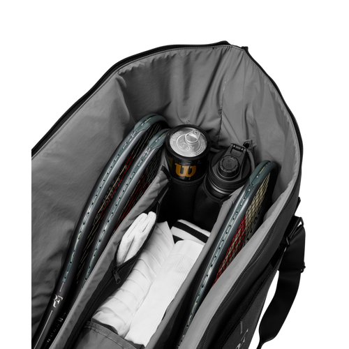 The Wilson RF Practice Bag brings ease to training and travel days. The design is inspired from the majestic Swiss Alps, a theme that echoes across the Roger Federer collection. This pinstripe bag offers enough space for up to six rackets along with a shoe compartment, internal accessory pockets and two external accessory pockets for small valuables. An RF logo and RF-detailed zipper pulls honor the 20-time major champion.